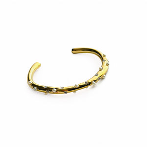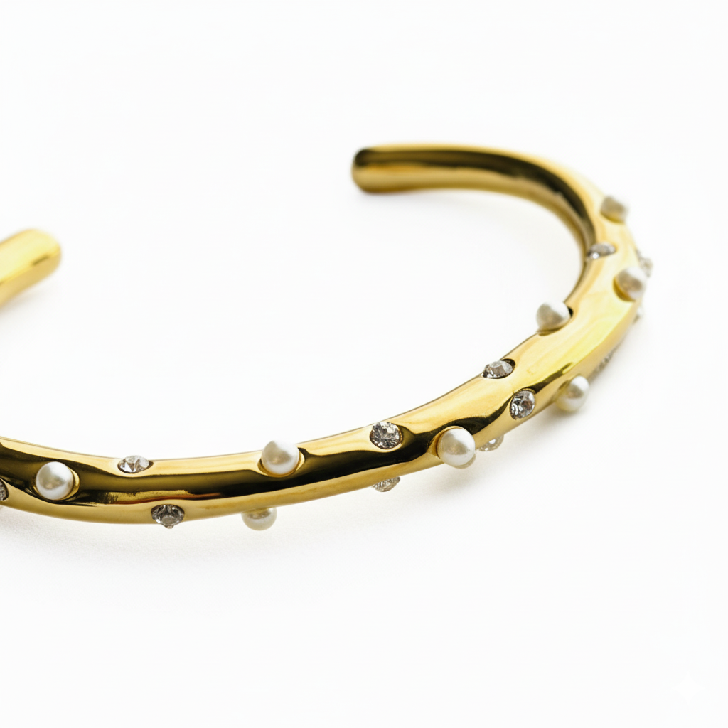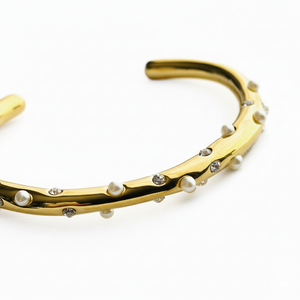 Bianca is an elegant and durable bracelet with small pearls embedded throughout, adding a touch of sophistication to any outfit. Crafted with high-quality materials, this bracelet is sure to elevate your style while making a statement. Perfect for any occasion.