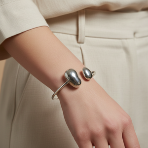 Keia combines striking modern aesthetics with unexpected comfort. This bracelet features a rigid architectural design that belies its flexible, supple construction—allowing it to move naturally with your wrist while maintaining its bold, contemporary silhouette. The innovative engineering ensures all-day wearability without compromising on style. Perfect for those who refuse to choose between statement design and everyday comfort.