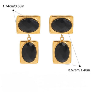 These elegant drop earrings feature striking black stones that add a touch of sophistication to any outfit. Expertly crafted to hang gracefully, they offer a bold yet refined accessory perfect for both formal occasions and everyday wear. The deep black stones provide a captivating contrast, enhancing your style with subtle elegance.